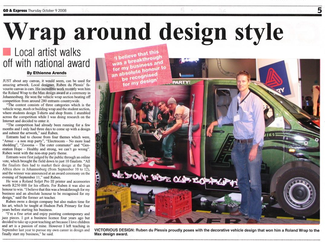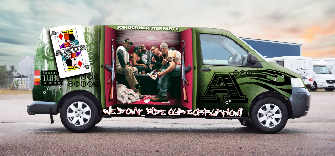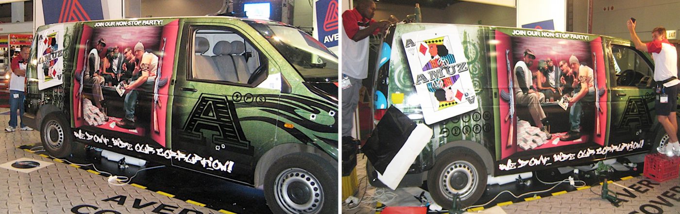First place winner of the Roland Wrap to The Max vehicle wrap design award, 2008. Contestants were given various themes to choose from, and I went with Amuz. Having a rowdy group of friends who were eager to play the part, we staged the photo for ‘inside’ the vehicle. Throw in many hours of PhotoShop and my idea was conceptualised into the final product. It was awesome to see the vehicle wrap in person.